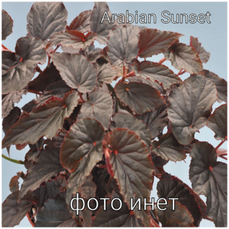 БегонияБегонія 'Arabian Sunset' є кустарниковою бегонію з темними листям бронзового кольору і зазвичай густо зростає . Квітки яскраво-рожеві і висять невеликими гронами. Темне листя буде добре контрастувати з іншою зеленню або строкатим листям.