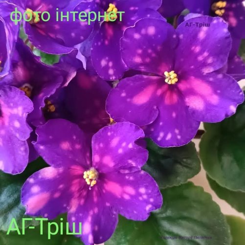 Фиалка (сенполия)Простые, фиалковые розовые цветочки разных оттенков с волнистыми краями, обильно усыпанные синим фэнтези в виде, точек, штрихов и целых фрагментов. Трейлер, полуминиатюрный, кустовой со светло-зелёной заостренной листвой. Обильнейшее цветение.