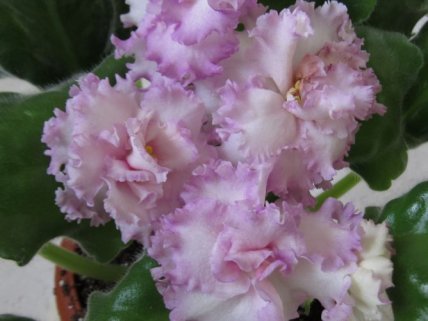 Очень крупные белые махровые и полумахровые звёзды с яркой крапчатой розово-малиновой каймой вариабильной ширины. Слегка гофрированные края лепестков. Светло-зелёные ровные листья. Аккуратная розетка. СтандартЛЕ-Цветочная Фея є в колекціях користувачів: chugaevasvetlana, kalashnikovaolene