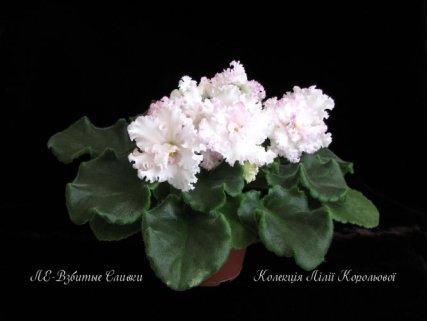 Крупные кружевные белые махровые цветы с тонкой гофрированной розово-малиновой каёмочкой по краю лепестков. Светлая аккуратная розетка из слегка волнистых листьев.ЛЕ-Взбитые Сливки є в колекціях користувачів: jsjuliashavlak, switlanafialka, terezazinkova, natali, fialkiodessa, allainua, fialki, tatyanatarasenko, liliyafialochka, viktoriya