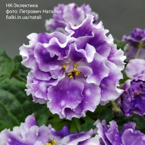Очень крупные махровые белые цветы с сливовыми напечатками и белым горохом на них. Ровная розетка. (сеянец НК-33-2.)НК-Эклектика є в колекціях користувачів: fialkiodessa, natali