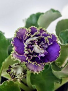 Цветы крупные, махровые, бахромчатые синего цвета с произвольным переходом в розово-кремовые тона. Кайма бронзово-зелёная гофрированная. Лист светлый, волнистый. СтандартЦветки ярко-глубоко-синие, махровые, с чёрточками или осветленными фрагментами по краям лепестков розоватового оттенка. По краю лепестков идет зеленая рюшчатая кайма. Листья темные, стеганый со слегка волнистым краем. Иногда у листьев есть красные пятна по белой тыльной стороне. Растет фиалка быстро, распускание бутонов происходит очень медленно, но одновременно.