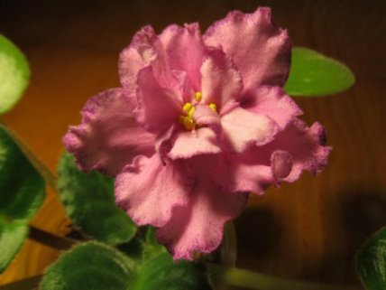 Фиалка (сенполия)Розовые полумахровые звезды с широкой ярко-зеленой слегка гофрированной каймой. Длительное обильное цветение. Слегка волнистые средне-зеленые листья. Стандарт