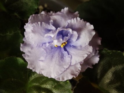 Фиалка (сенполия)Крупные полумахровые и махровые очень красивого чистого оттенка нежно-сиреневые звезды с более светлым глазком и тончайшей темносиреневой каймой по краю цветов которая проявляется при полном роспуске цветка. Цветы воздушные и создают впечатление легкости и прозрачности. Средне-зеленые ровные листья. Аккуратная выставочная розетка.