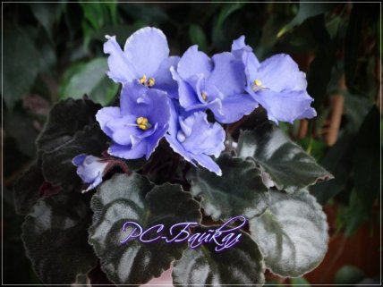 Фиалка (сенполия)Крупные полумахровые и махровые нежно-голубые звёзды. Края лепестков обведены пурпурным кантом. Зелёная выставочная розетка из заострённых листьев. Стандарт 2004